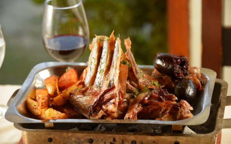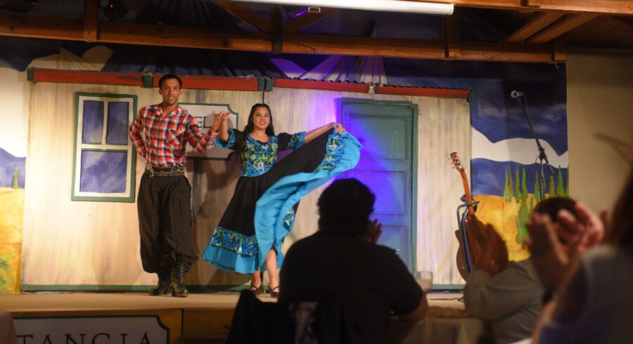 O jantar servido vamos desfrutar de uma empanada criolla de entrada, cordeiro patagônico, linguiça, batatas rusticas e saladas. Um jantar maravilhoso acompanhado por uma boa musica ao vivo e um show folclórico com dança muito agradável. Ao fim poderá escolher entre algumas opções de sobremesa.