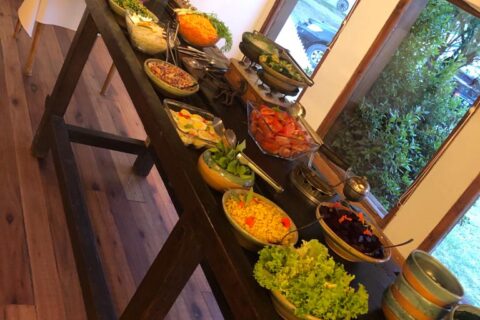 Todos são recebidos de uma forma muito hospitaleira com um delicioso aperitivo de boas vindas e após provaremos um pão de campo com um molho.