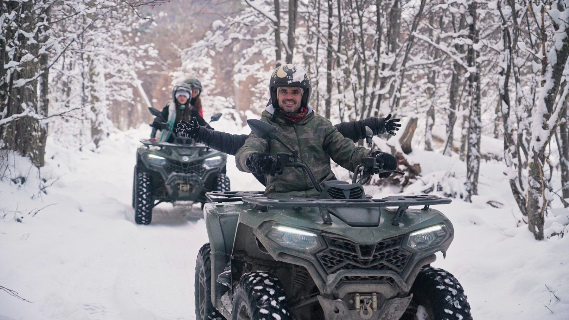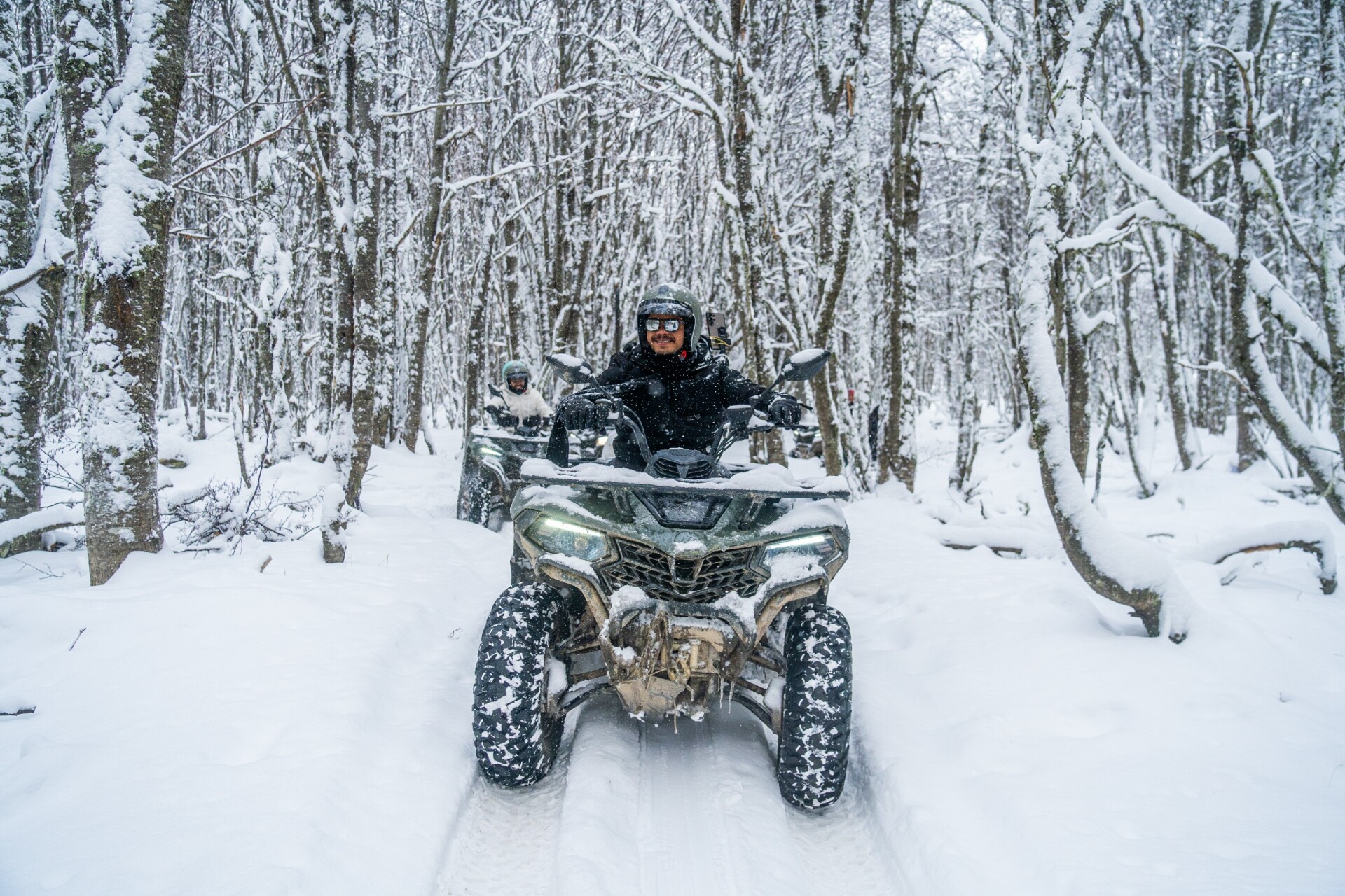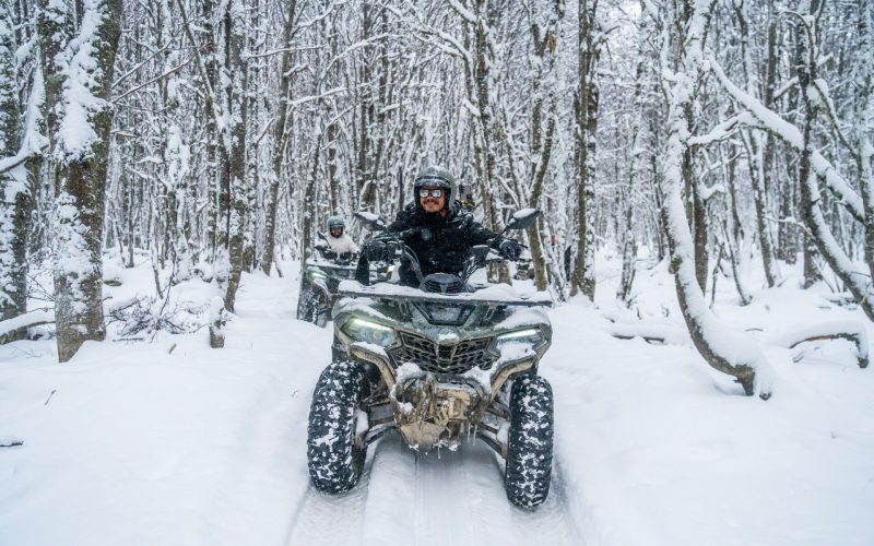 Quadriciclo: Um percurso de 25 minutos em quadriciclos para destemidos exploradores. Aqui você irá acelerar pelas trilhas geladas e conhecerá um outro lado do Park Austral com riachos e cachoeiras congeladas ao longo do caminho e aproveitar muito a beleza da natureza patagônica.