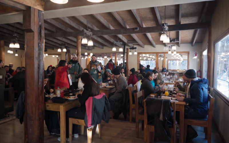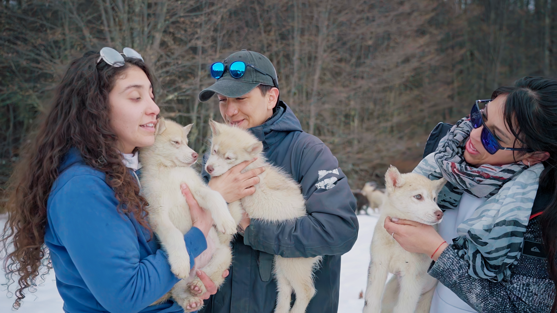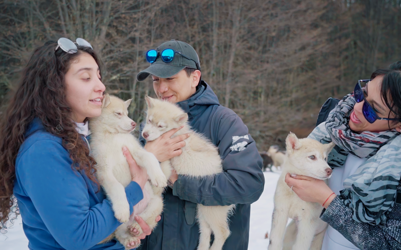 Trekking com Huskies: Para quem quer uma experiência ainda mais encantadora com os Huskies, teremos uma caminhada sensacional de 30 minutos pelos bosques nevados e lagos do Park Austral com um guia e os cachorros. É possível mesclar essa atividade com a Visitação ao Espaço Husky e Interação para uma experiência ainda mais completa.