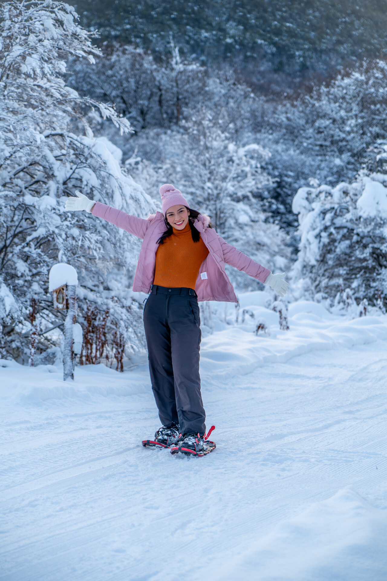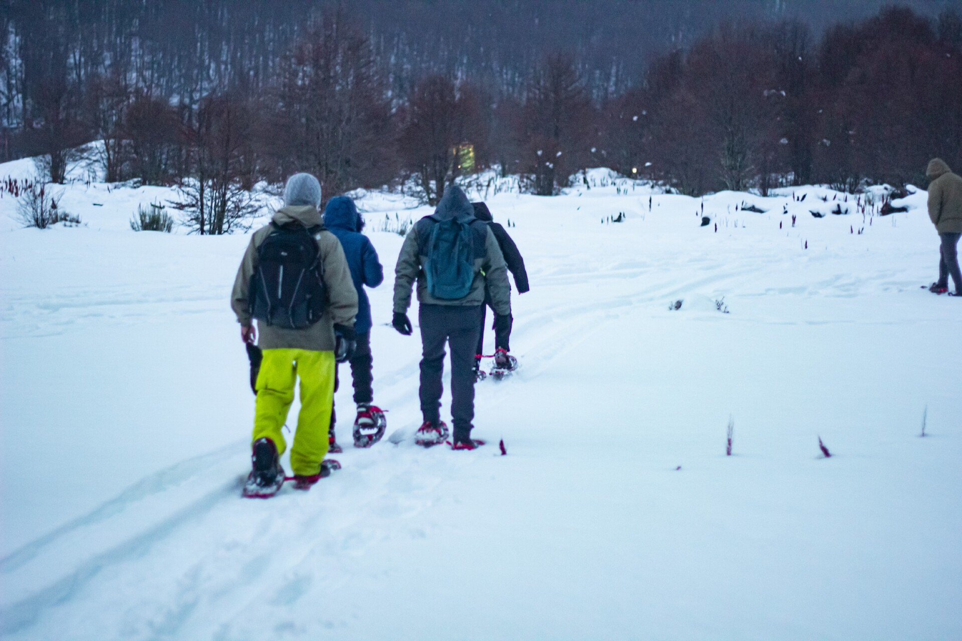Caminhada com Raquetes: Com as raquetes de neve nos pés, começaremos a nossa caminhada pelos bosques, onde os amantes de fotografia terão um cenário majestoso para registrar suas imagens, em