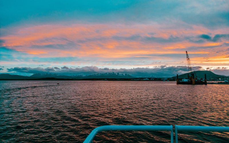 Logo no início da navegação, já podemos desfrutar da bela “Bahía Ushuaia” e observar a posição privilegiada da cidade, que se encontra cercada por magníficas montanhas e glaciares.