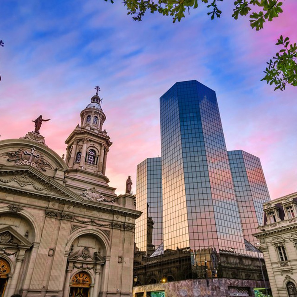 Parque O Higgins, (apenas visita panorâmica, pois está a aplicar os protocolos da COVID), Palácio do Governo – La Moneda, Plaza de Armas (PANORAMICO), Catedral de Santiago, Central dos Correios, Câmara Municipal de Santiago e Cerro Santa Lúcia (Exceto às segundas que não abre para visitação), de onde se obtém uma vista panorâmica de Santiago, para um curto tempo livre para tirar fotografias.