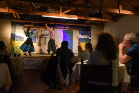 O jantar servido vamos desfrutar de uma empanada criolla de entrada, cordeiro patagônico, linguiça, batatas rusticas e saladas. Um jantar maravilhoso acompanhado por uma boa musica ao vivo e um show folclórico com dança muito agradável. Ao fim poderá escolher entre algumas opções de sobremesa.