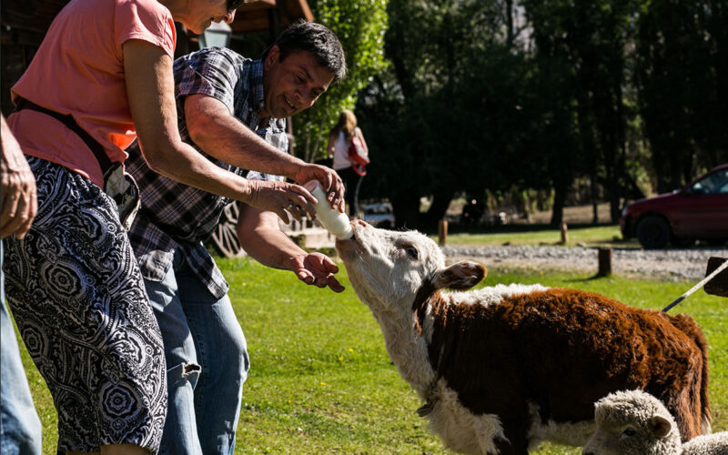 Dentro da fazenda, você será recebido com mates, café carreteiro, típico da região e tortas fritas, enquanto eles contam a história da estância e como suas atividades foram realizadas no início do século 20. Será feita uma demonstração da atividade típica da Patagônia que é a esquila de ovelhas na tesoura e uma palestra sobre a produção de lã e todos os detalhes envolvidos nesse comércio.