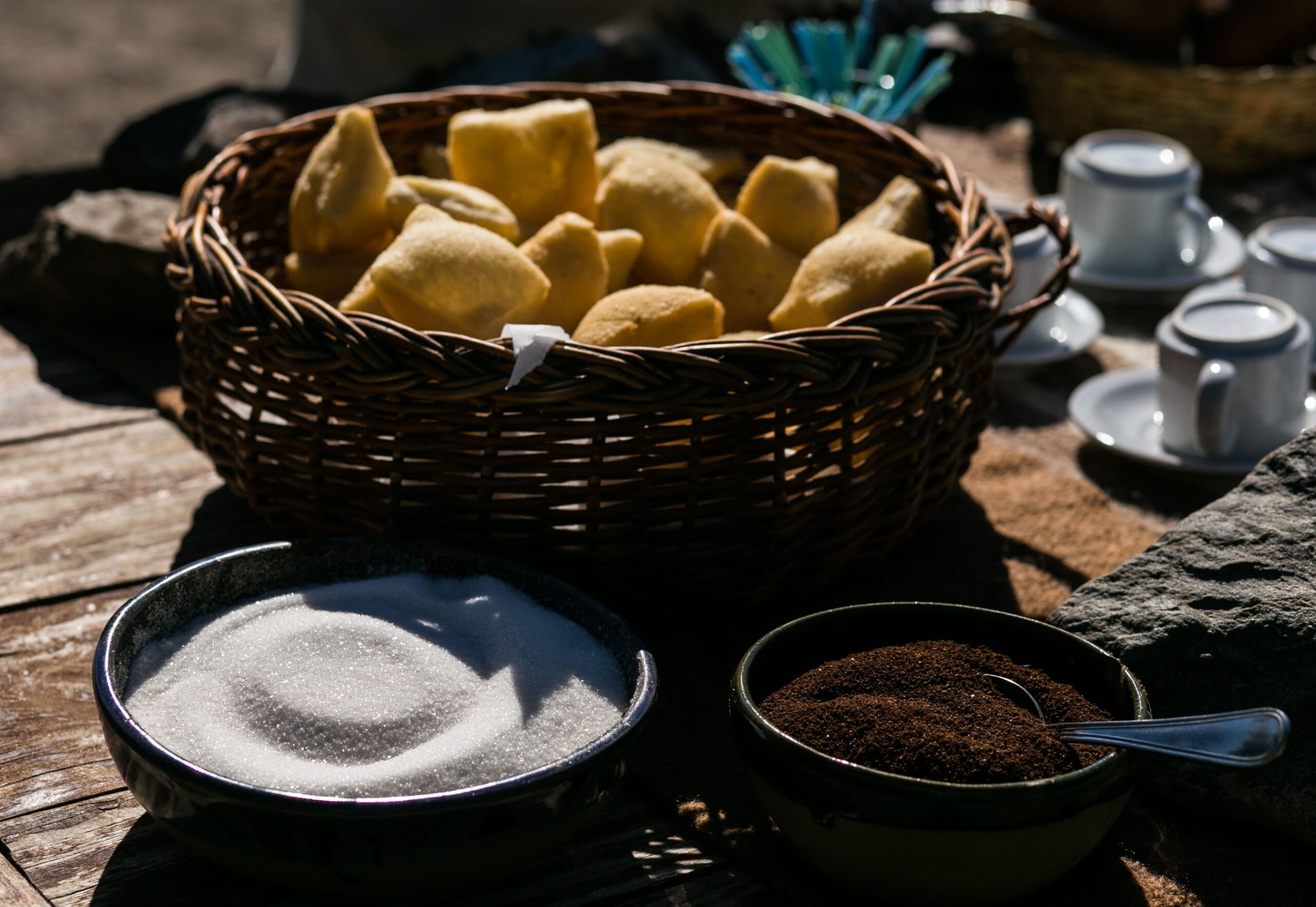 Todos são recebidos de uma forma muito hospitaleira com um delicioso aperitivo de boas vindas e após provaremos um pão de campo com um molho.