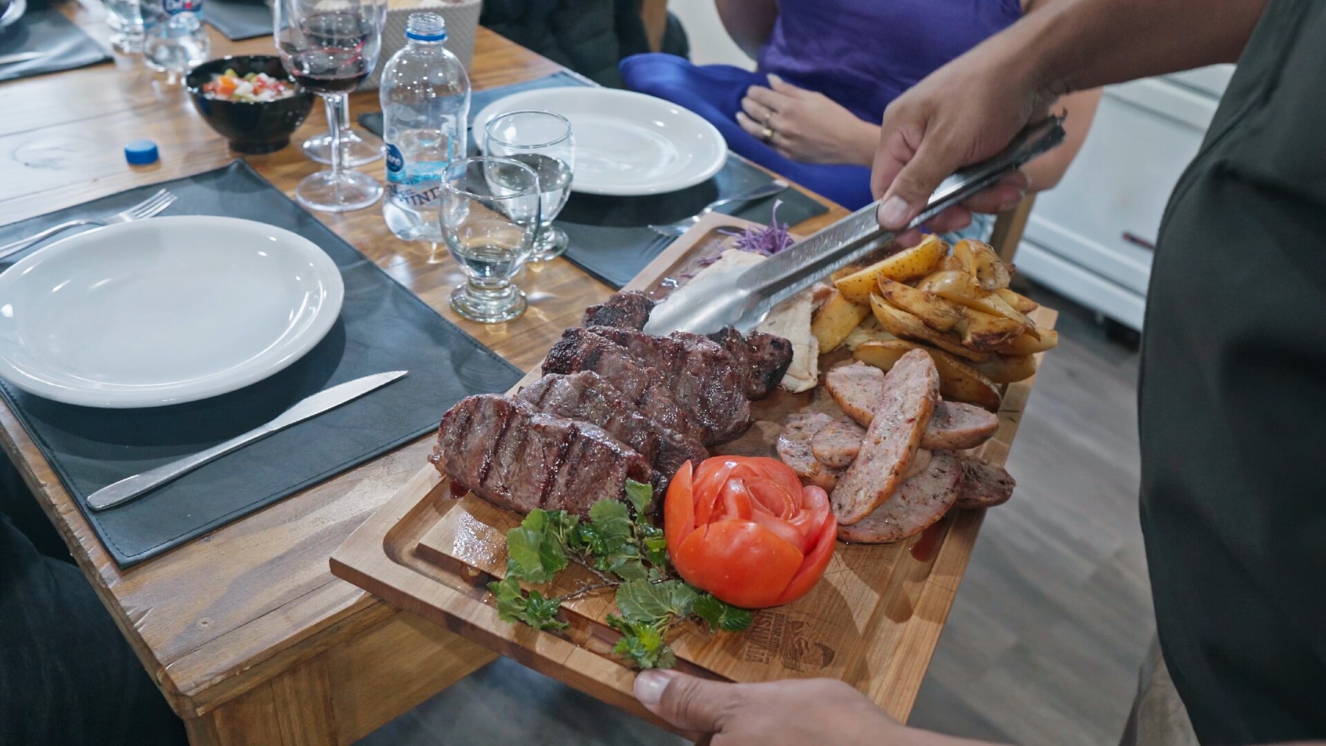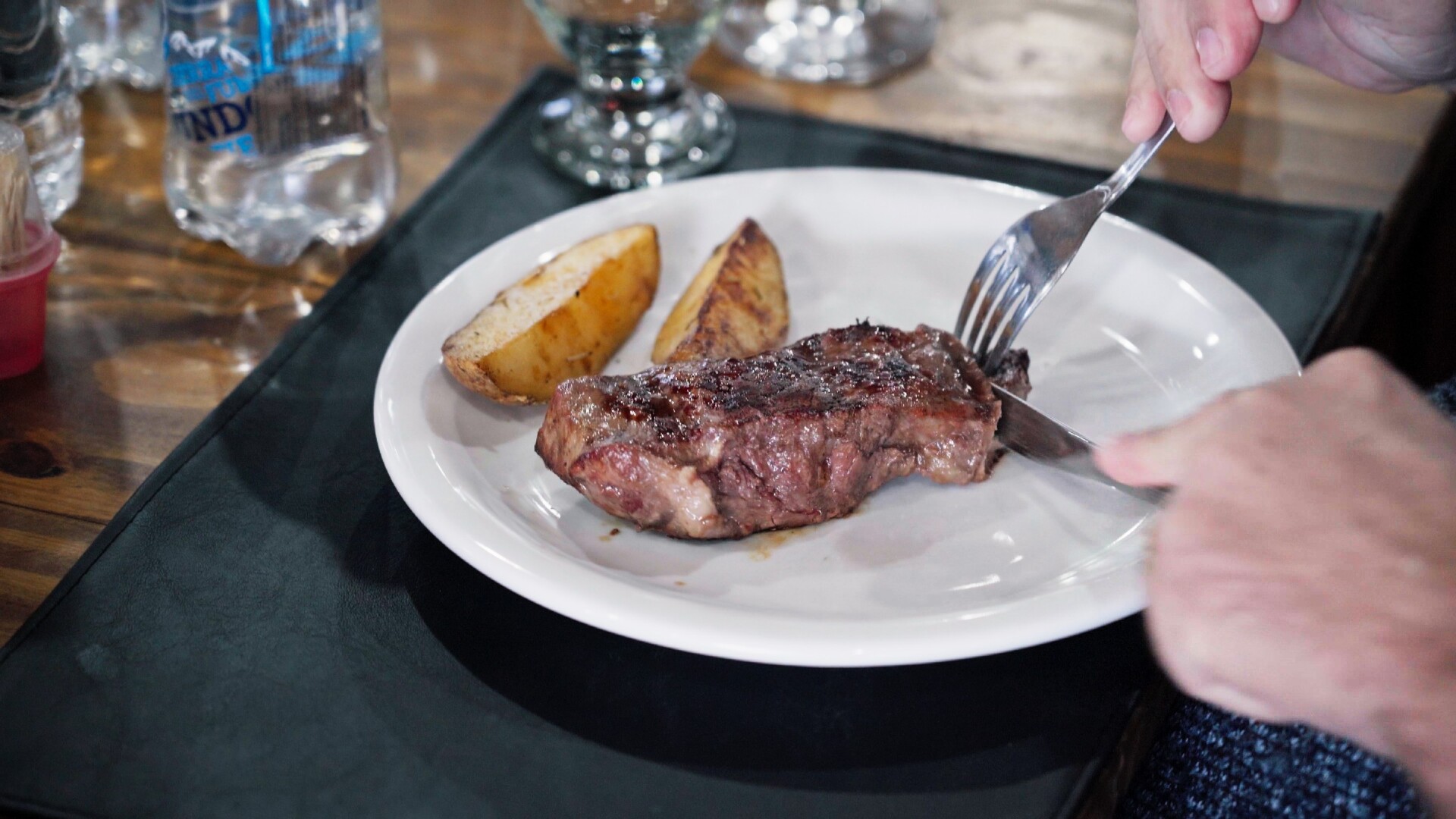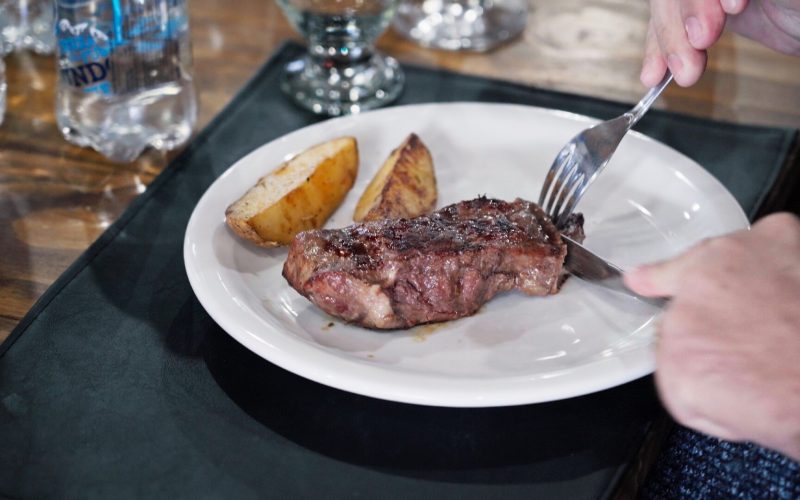 Almoço/Jantar: Bife de Chorizo, e Batatas assadas + Bebidas a vontade (Vinho, refrigerante e água).