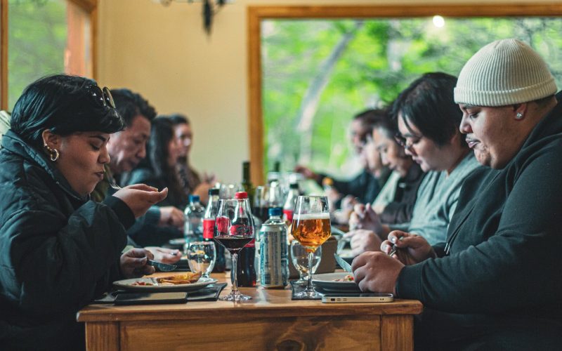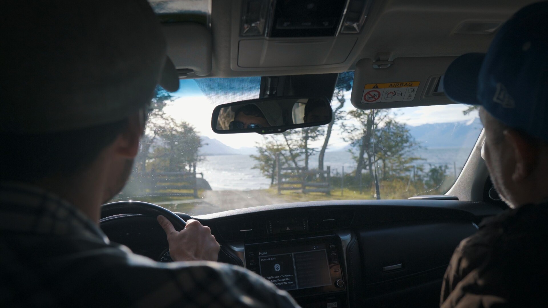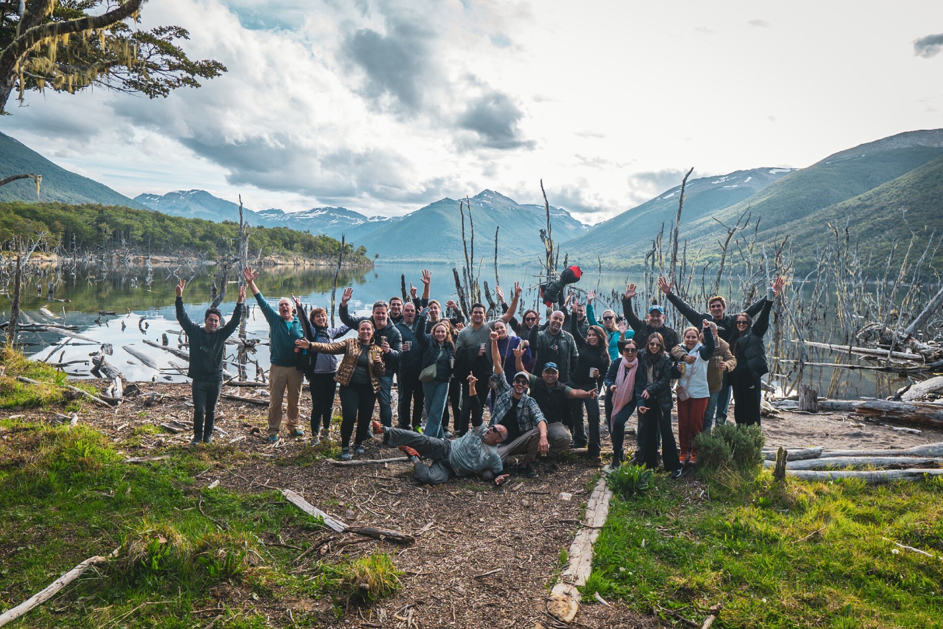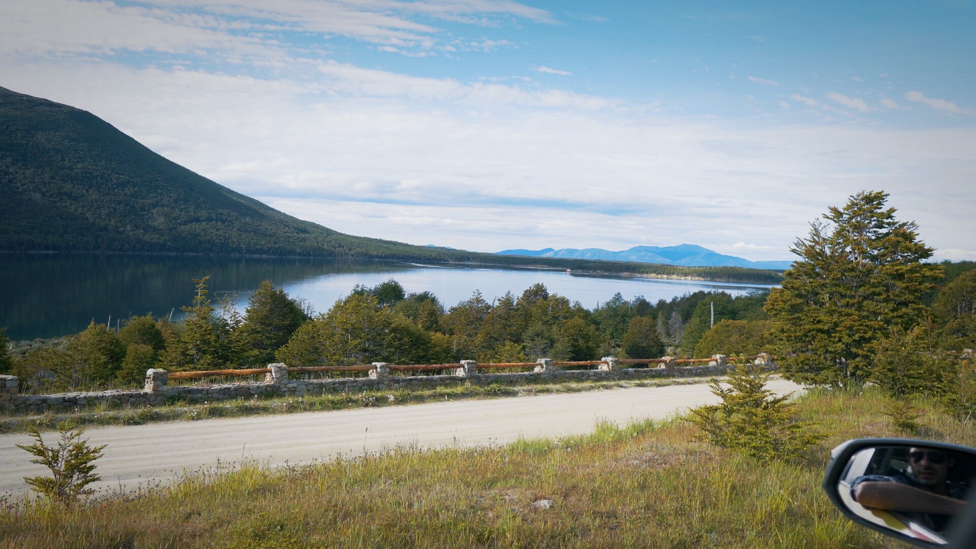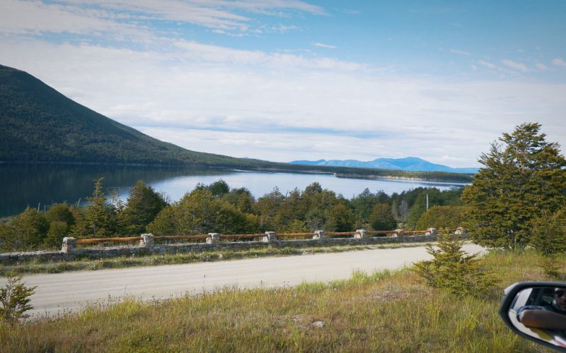 Após o circuito, seguimos em direção à beira do Lago Fagnano — que possui mais de 100 km de extensão e chega até o Chile — cercado por lindas montanhas nevadas. Um lugar de paz incrível, com uma paisagem surpreendente e uma energia única.