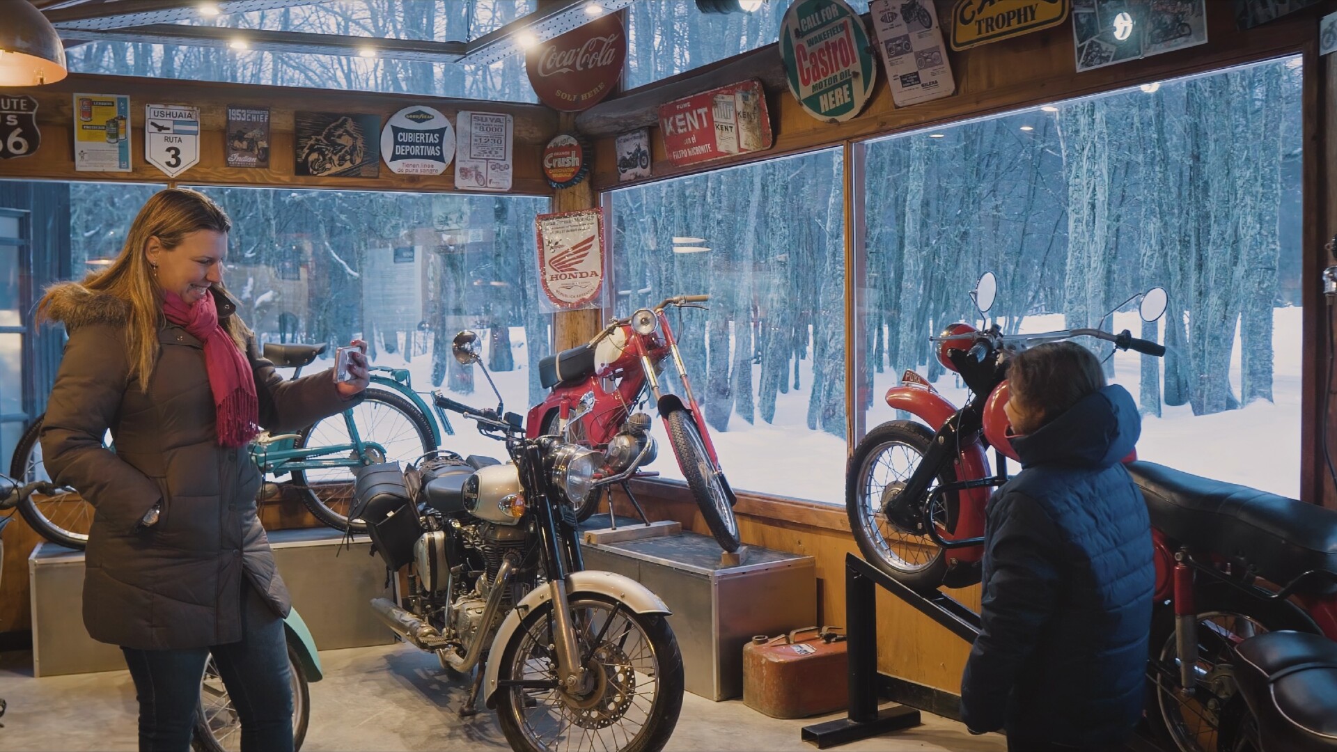 Visitação ao único bar/museu de motos da Patagônia Sul