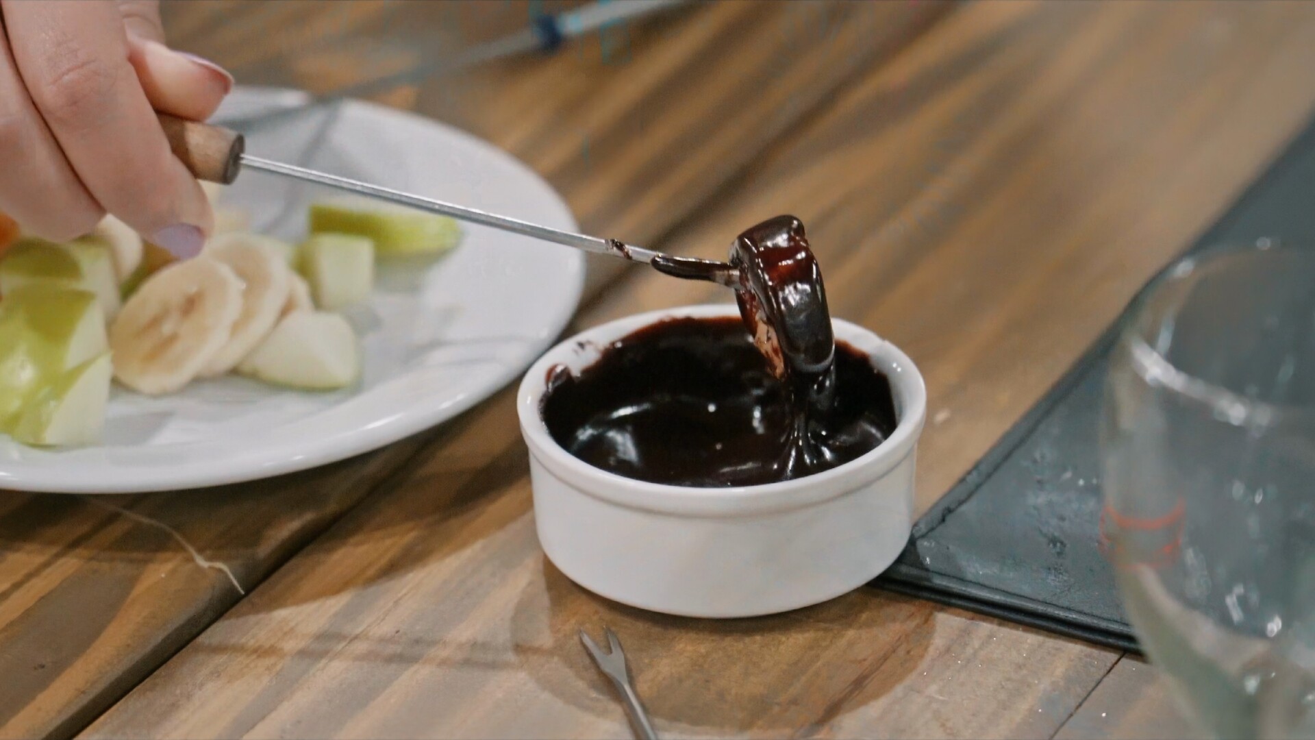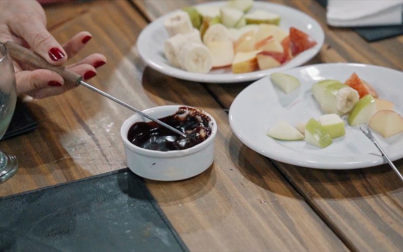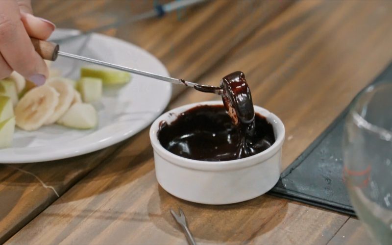 • Fondue de chocolate com frutas frescas como sobremesa;