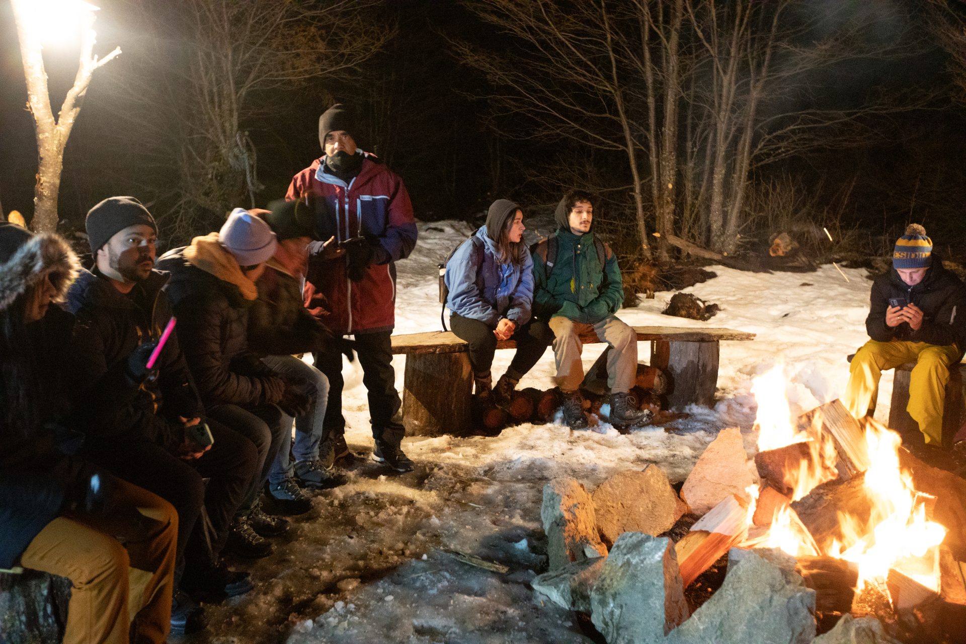 Ao chegar ao refúgio, você será recebido com bebidas à vontade (Vinho, refrigerante e água) e empanadas de cordeiro, enquanto nossa fogueira aquece o ambiente e histórias fascinantes dos povos da Terra do Fogo são reveladas, tornando cada narrativa viva e emocionante: