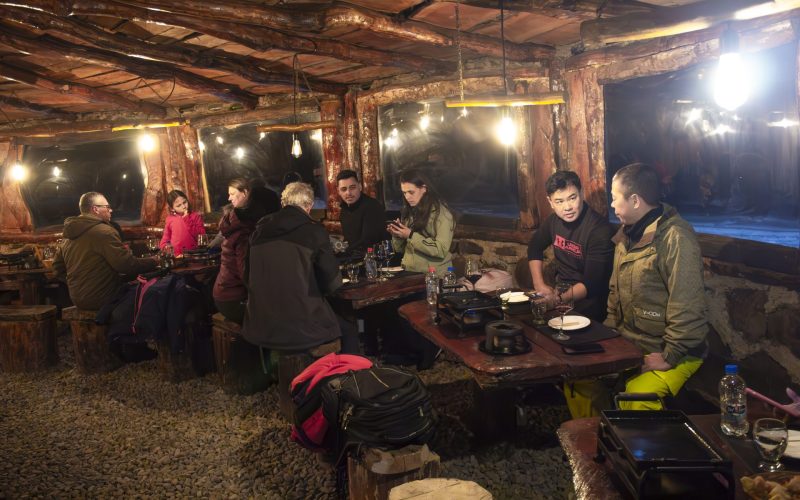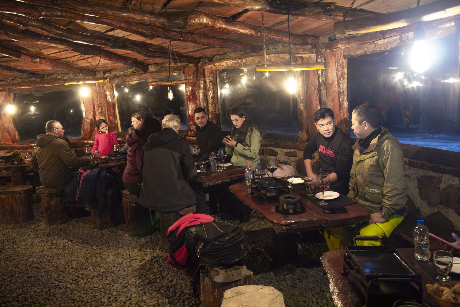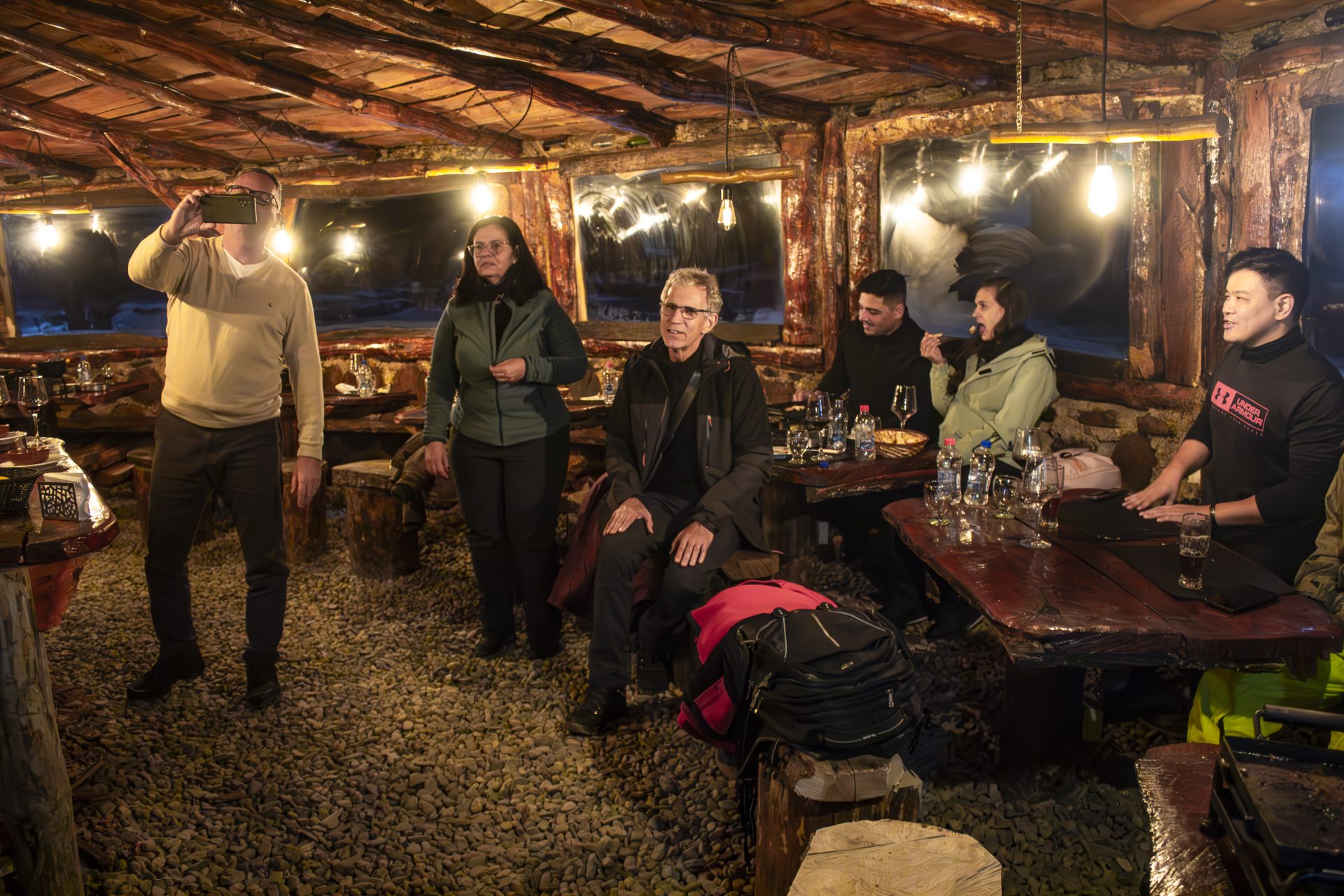 Em seguida, seguimos por uma trilha mágica até o refúgio, rodeados por montanhas nevadas e horizontes infinitos, preparando o cenário perfeito para a imersão cultural e gastronômica que nos aguarda.