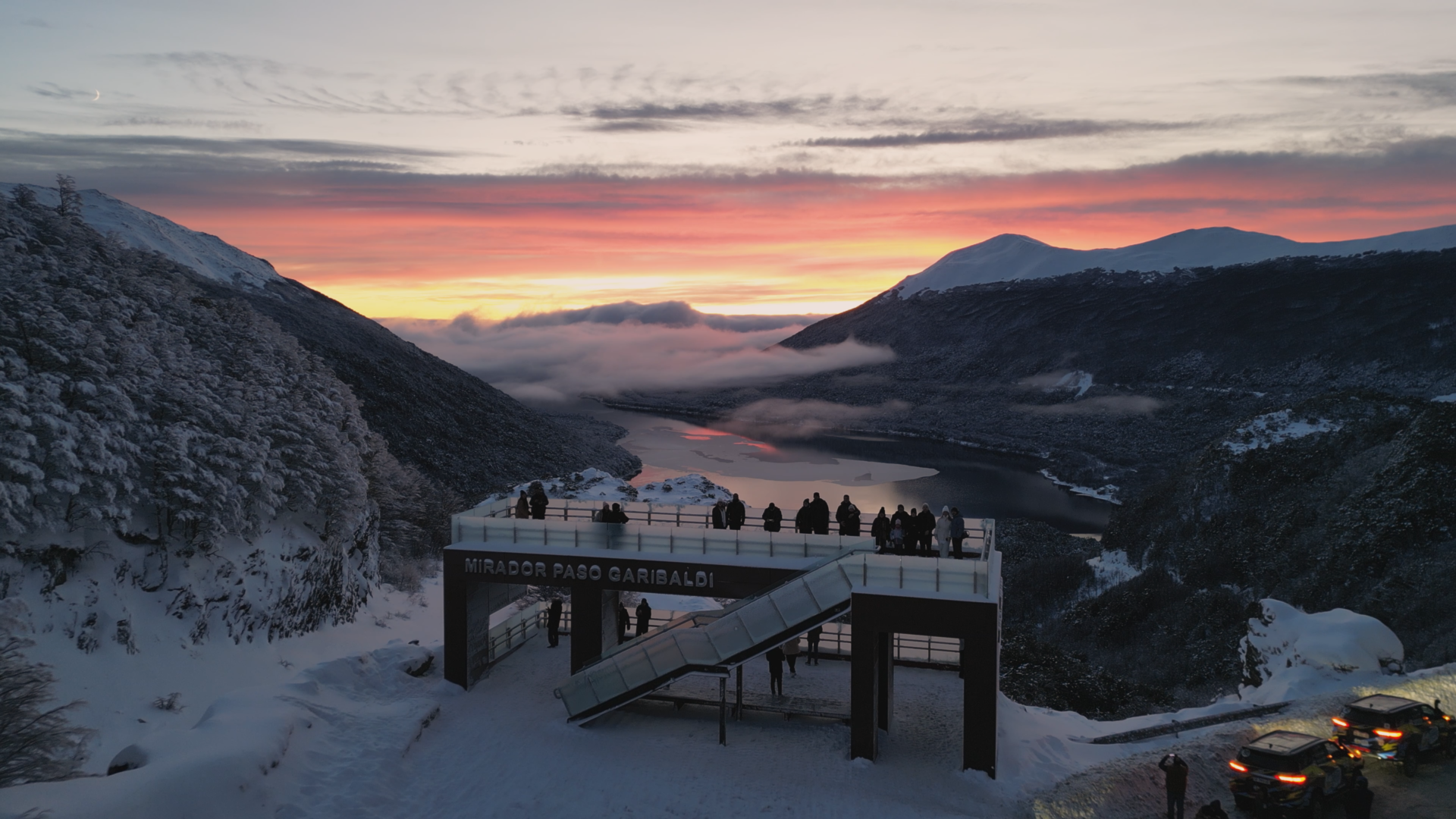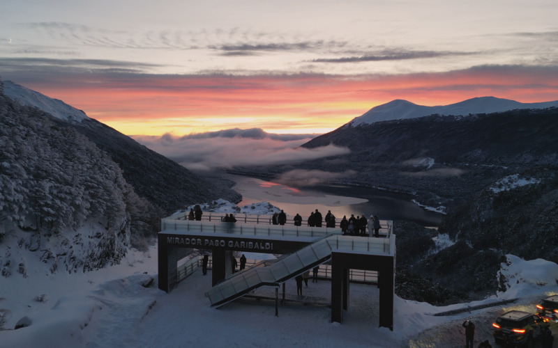 Nossa próxima parada será em Paso Garibaldi, alcançando um mirante de tirar o fôlego, onde todos poderão contemplar a vista espetacular dos Lagos Escondido e Fagnano que se estende por mais de 100 km, alcançando o Chile, proporcionando uma experiência indescritível em uma estrutura confortável e panorâmica.