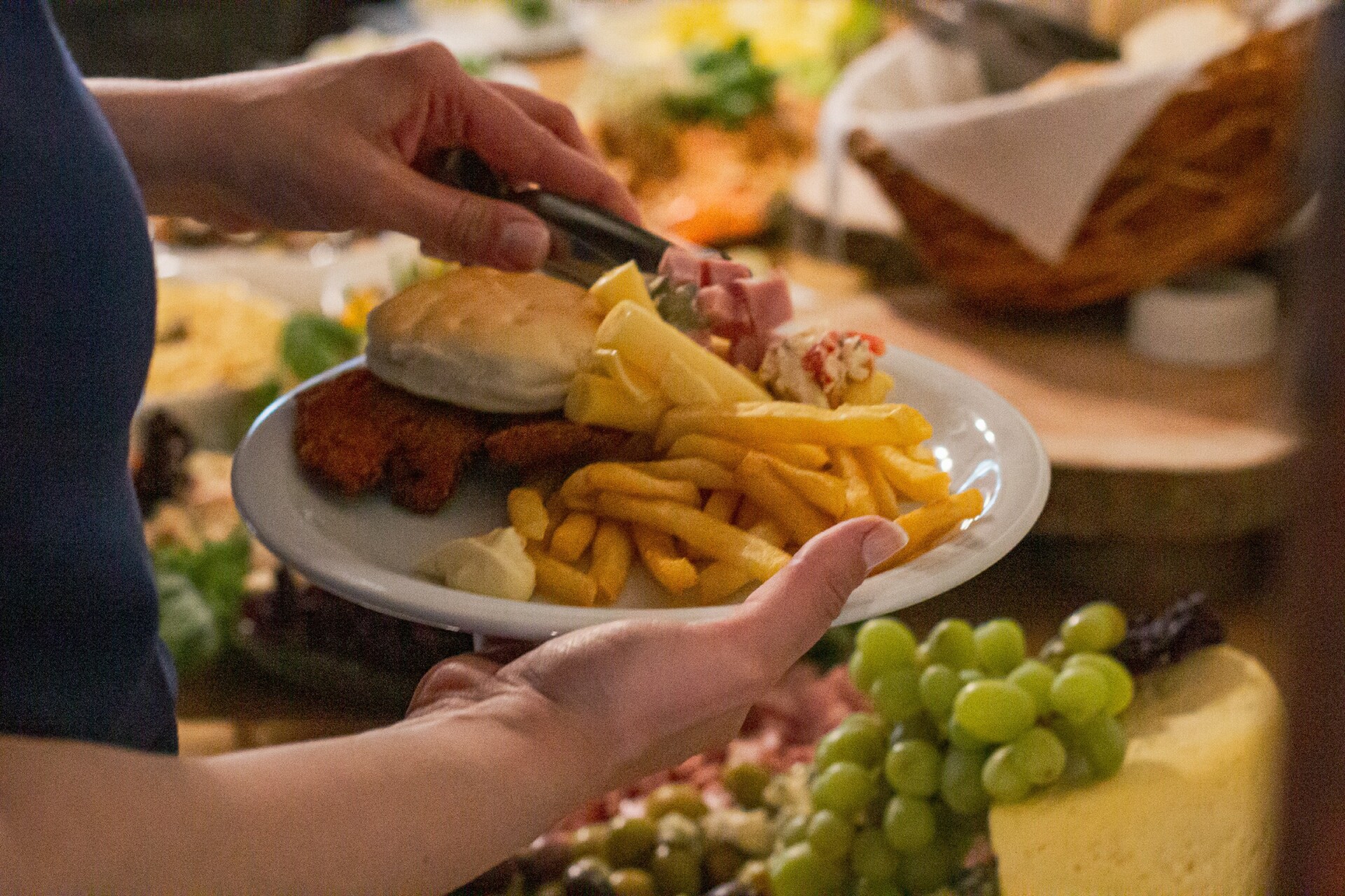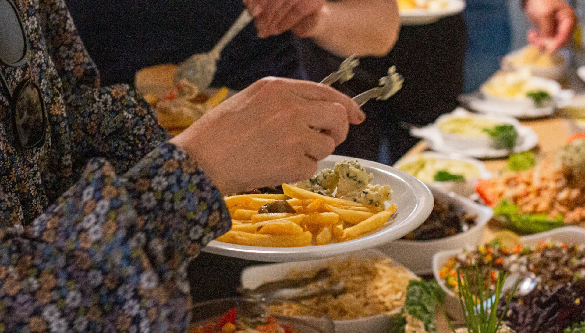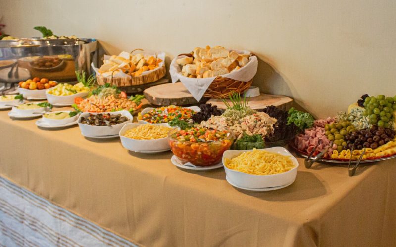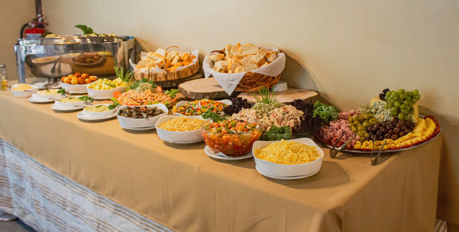 Recepção com café e bolos fritos.