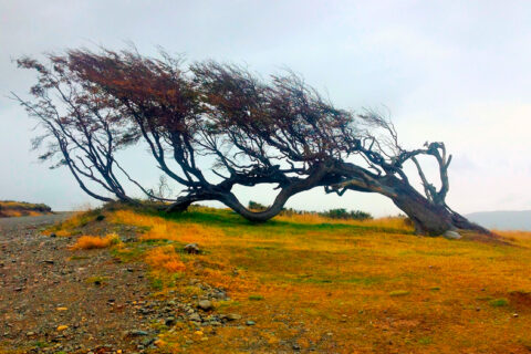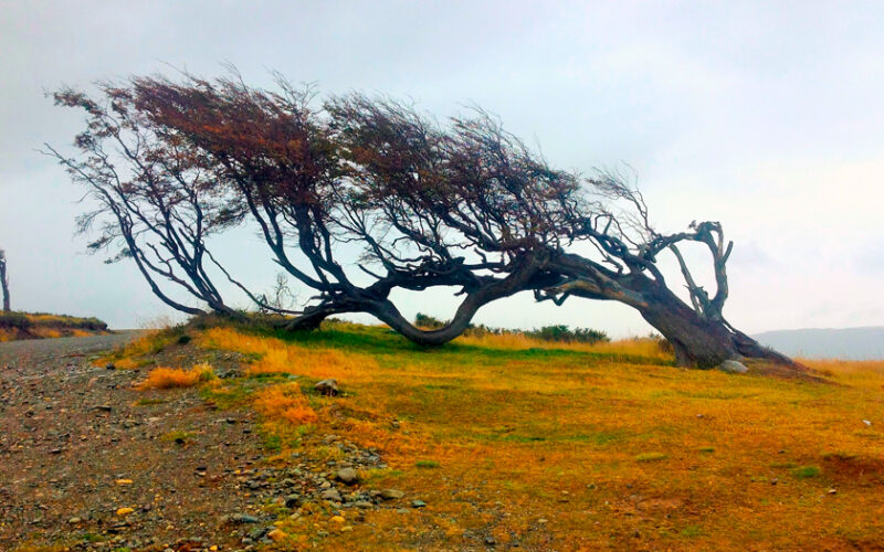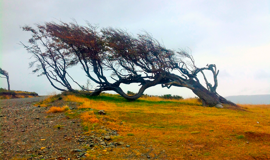 Nossa primeira parada será para ver as típicas e famosas Árvores Bandeira. Elas são árvores que se inclinaram muito devido aos ventos fortes da patagônia argêntina. São lindas e vê-las é uma experiência realmente única!
