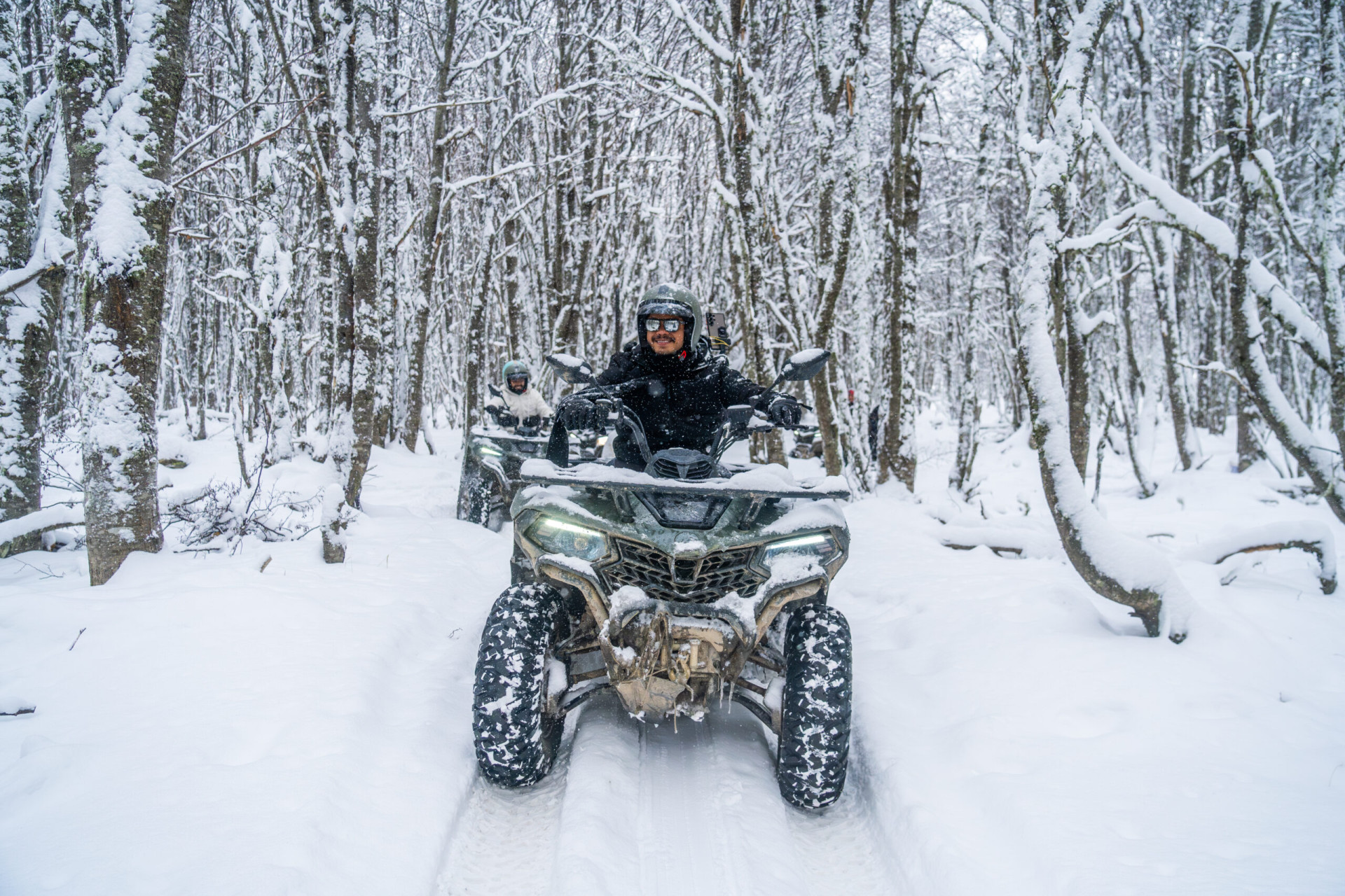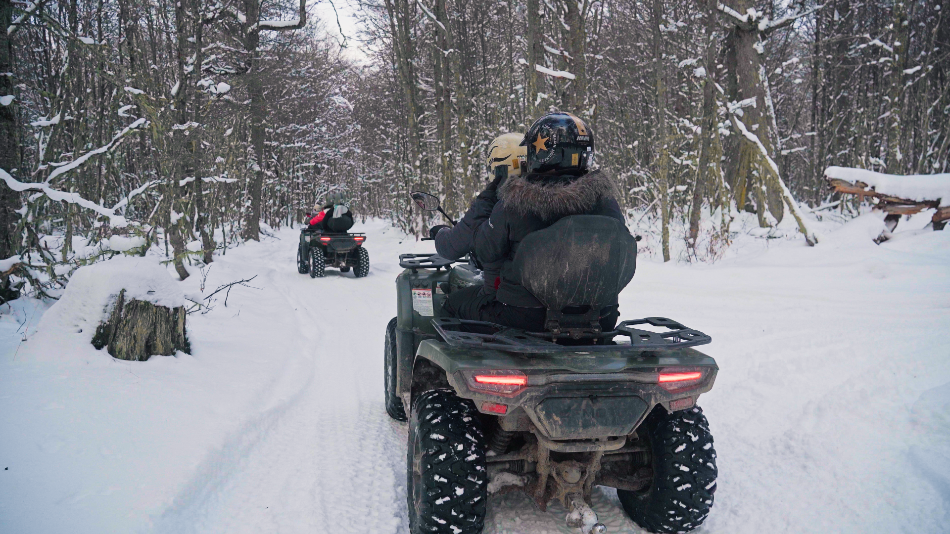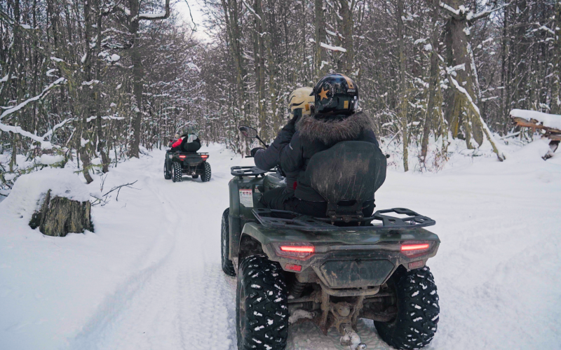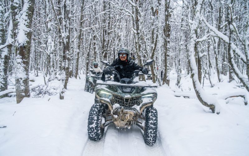 Um percurso de 25 minutos em quadriciclos para destemidos exploradores. Aqui você irá acelerar pelas trilhas geladas e conhecerá um outro lado do Park Austral com riachos e cachoeiras congeladas ao longo do caminho e aproveitar muito a beleza da natureza patagônica.