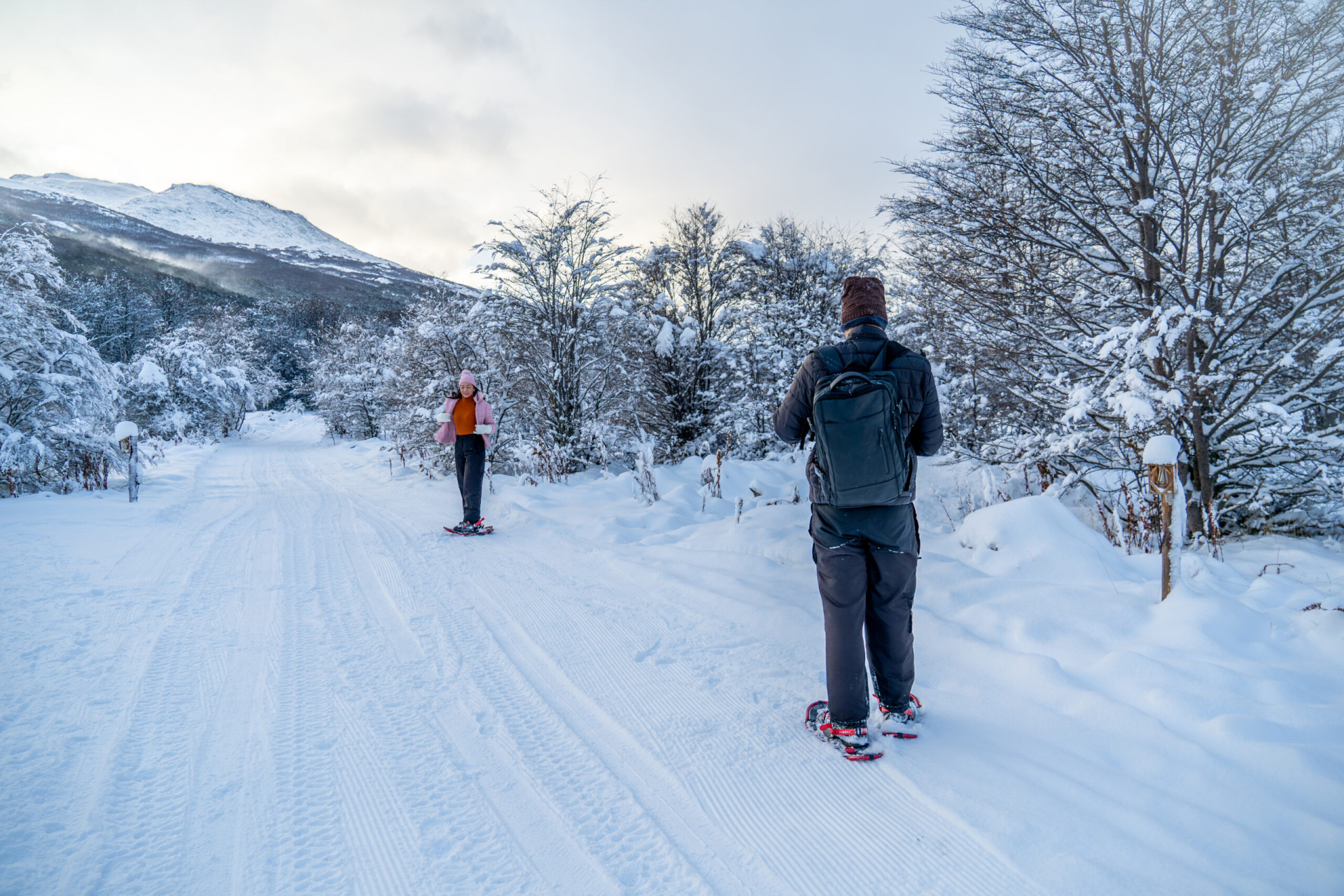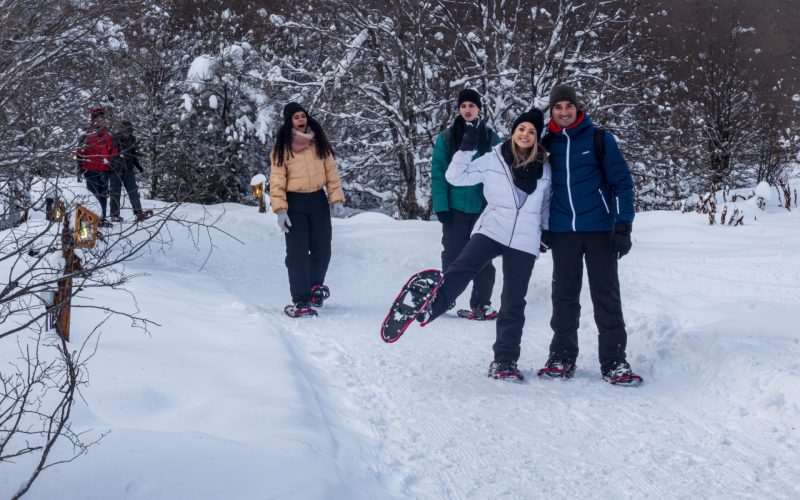 Com as raquetes de neve nos pés, começaremos a nossa caminhada pelos bosques, onde os amantes de fotografia terão um cenário majestoso para registrar suas imagens, em meio às montanhas nevadas dos Andes e caminhos com bosques nevados. Serão 30 minutos de uma beleza incansável!