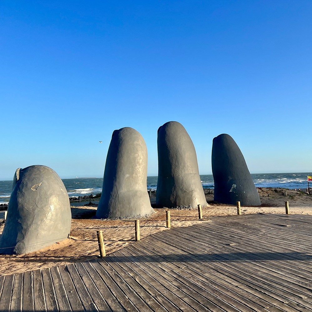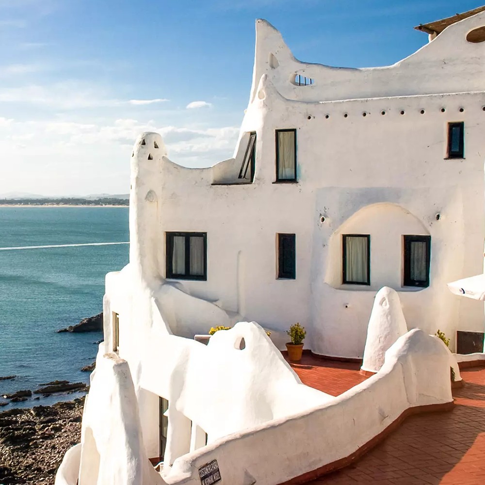 Saída de Montevidéu, no caminho vista panorâmica das praias de Montevidéu e da Costa do Ouro, em direção a Punta Ballena para visitar a famosa Casa Pueblo (sem acesso), casa e escultura de Carlos Paez Vilaros, pintor uruguaio.