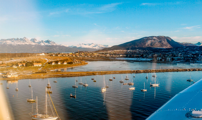 Sobrevoando o canal Beagle, iremos observar suas ilhas e o Farol Les Eclaireurs – também conhecido como Farol do Fim do Mundo – sem dúvida uma das imagens mais emblemáticas da região.