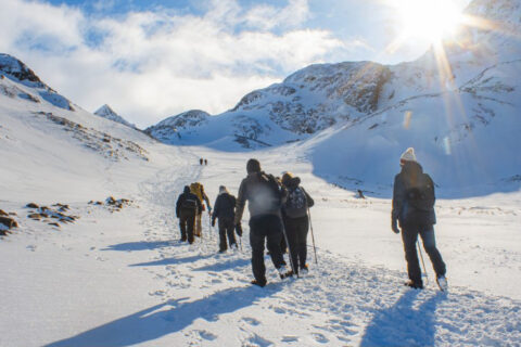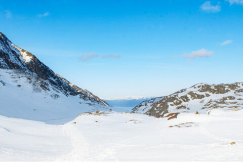 Cercados por montanhas nevadas, enfrentamos uma subida por mais de uma hora, encorajados pela magnificente vista que vai sendo descoberta à medida que subimos.